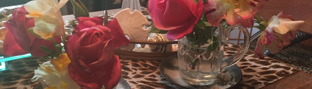 Planted at least six feet apart in order to comply with all social distancing orders, here’s a couple of little bouquets displayed in a Waterford crystal sugar and creamer, just because…