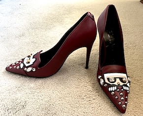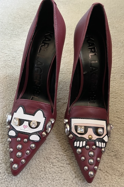 Of course these shoes had to come home with me. I’m totally obsessed. The kitty (Lagerfeld’s emblem), the pearl, the sparkles; each shoe is slightly different. Yes, I’m OBSESSED with the design, but even with a four-inch heel, they are actually comfortable.