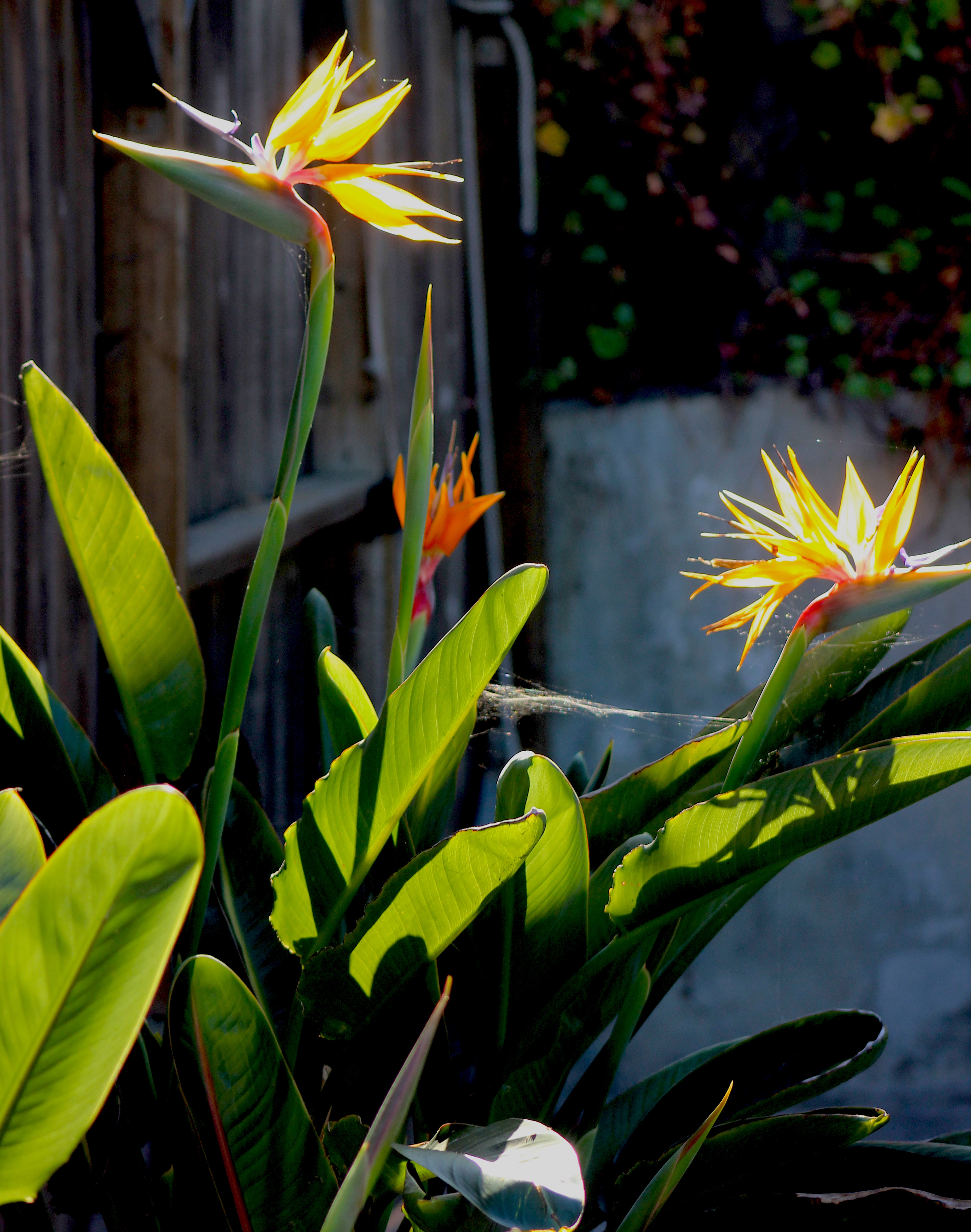 There is nothing so beautiful as the glow of late afternoon sun through bright orange Birds of Paradise.