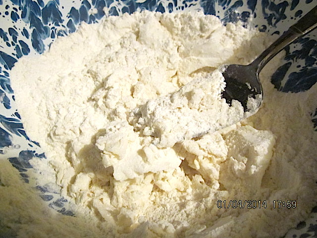 biscuit2Next, it’s time to cut the shortening into the dry ingredients. I use a fork. Simple!