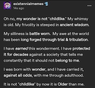 There’s a huge difference between being childlike and childISH. I’ve been (wrongly) accused of being childish or of not “growing up” (whatever THAT means) when the truth is that I’ve retained the quality of childlike wonder and joy regarding the world we inhabit — especially when it comes to simple things like a butterfly or a seashell or whales or stargazing or a spectacular beach sunset. At the end of the day, these things are what’s important, at least for me.