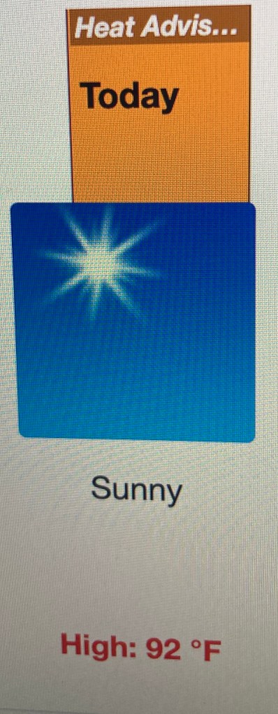We are in an extended high heat warning. It was nearly one hundred degrees yesterday. Scorching, brutally hot.